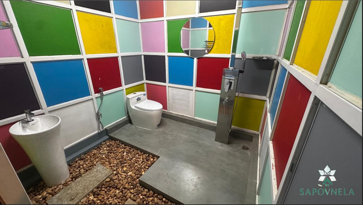 ✿ A cube-shaped open shower, defined by bold Rubik’s-inspired colours and open sky ✿ Air-conditioned comfort balanced with natural ventilation